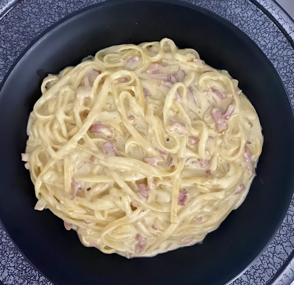 Bacon, Garlic, Mozzarella Cheese in a Creamy Sauce with Linguine Pasta