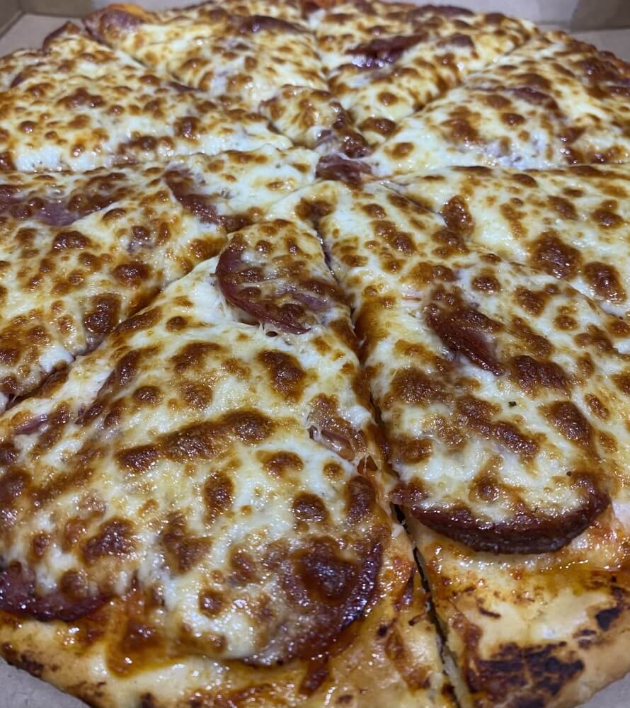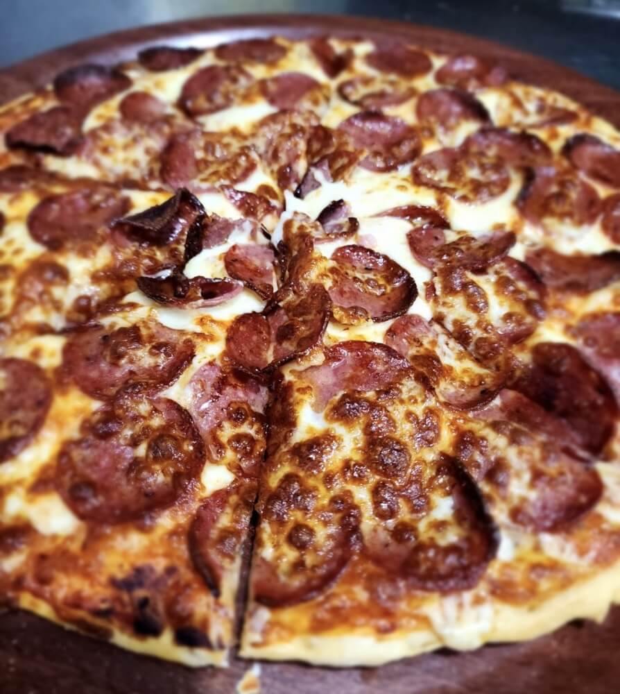 Pepperoni, Capsicum, Jalapeno, Onion, & chilli (anchovies optional) on a Red Pizza Base