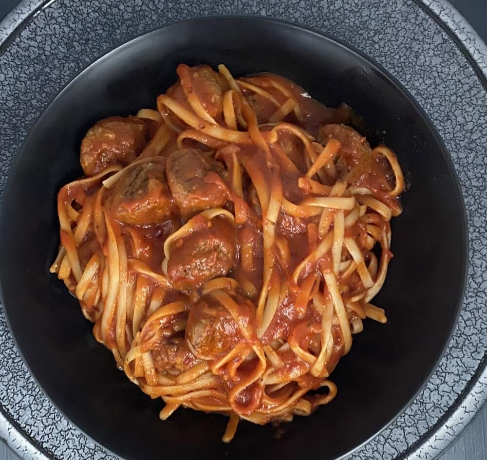Juicy Meatballs in a Rich Tomato Sauce with Linguine Pasta (chilli optional)